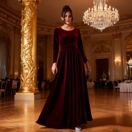 Bu zarif Kadın Elbisesi ile akşam görünümünüzü yükseltin. Yüksek kaliteli polyesterden üretilen bu elbise, üst düzey konfor için rahat ve bol bir kesim sunar. Yumuşak ve hafif kumaş, tüm gece boyunca giymeyi seveceğiniz lüks bir his sağlar.. Kadife dokulu tam etek tasarımı, resmi davetler için mükemmel olan şık bir hava katıyor..