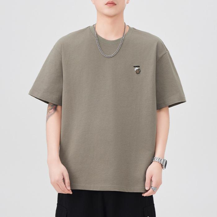 Latest Summer Short-sleeved T-shirt for Mens Embroidered Comfortable Fit Japanese Classic Style Leisure 5-minute Sleeve T-shirt for Men