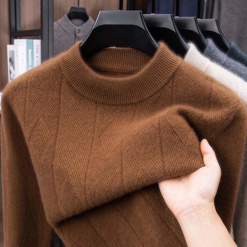 Stay cozy and stylish during the colder months with this men's winter sweater, designed to provide both warmth and comfort. Featuring a half-high collar and a loose fit, this knit sweater is perfect for middle-aged dads or anyone seeking a relaxed yet fashionable look. The round neckline and long sleeves add to its classic appeal, making it an ideal base layer for various winter outfits.
