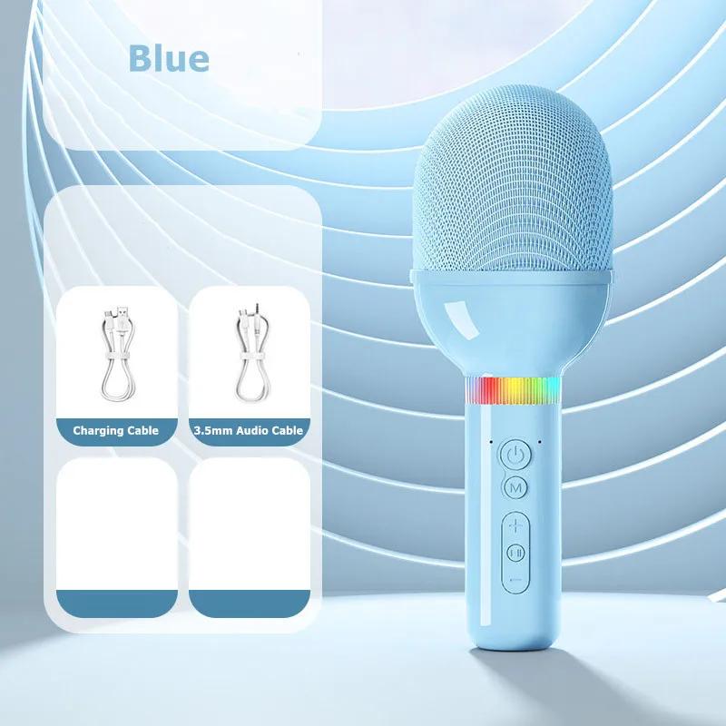 Portable Wireless Karaoke Microphone Bluetooth Handheld Speaker Home KTV Player with LED Lights Intelligent Noise Reduction
