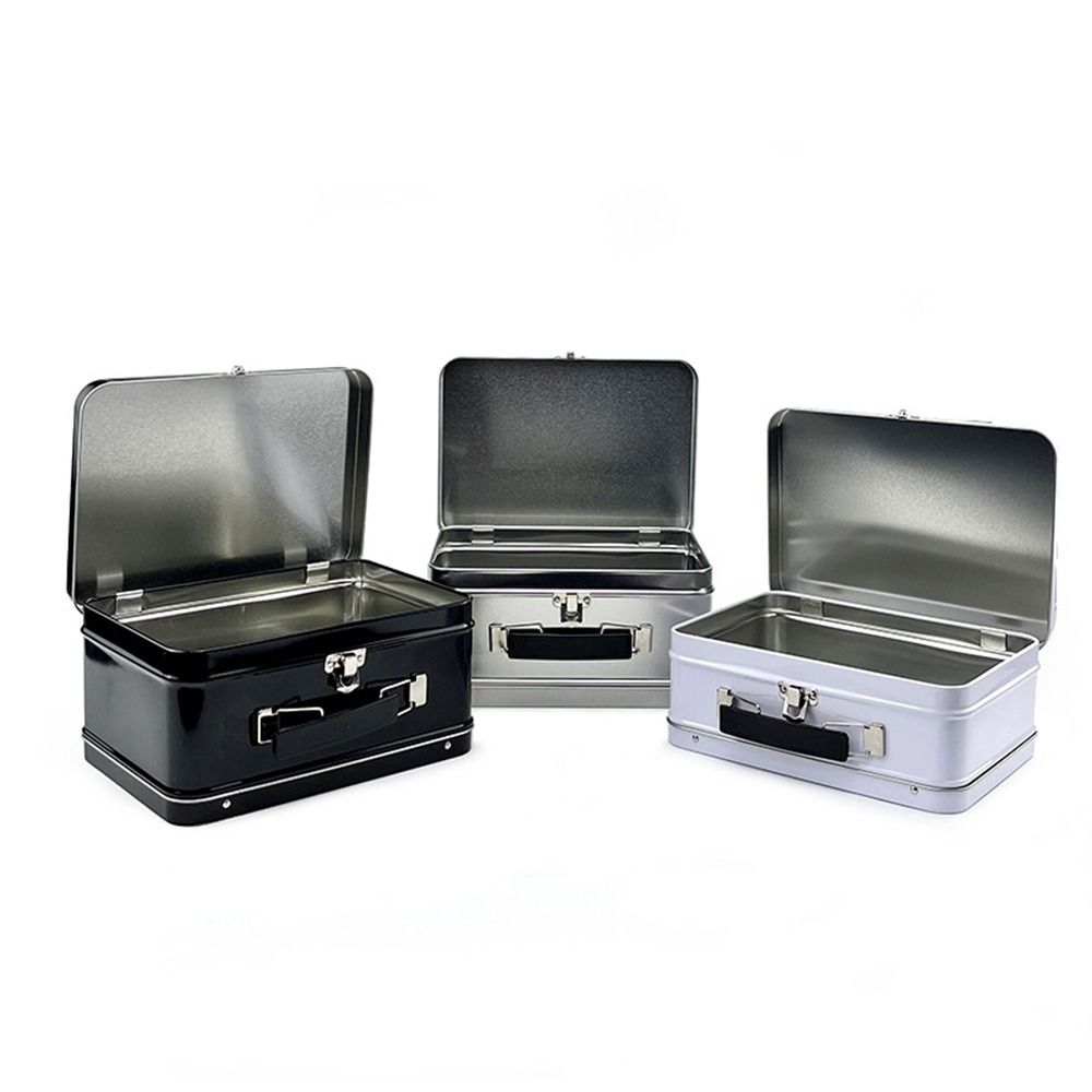 Durable Rectangle Handheld Iron Box tinplate Old-fashioned Lunch Box White Black Silver Cake Packaging Box Money Contain