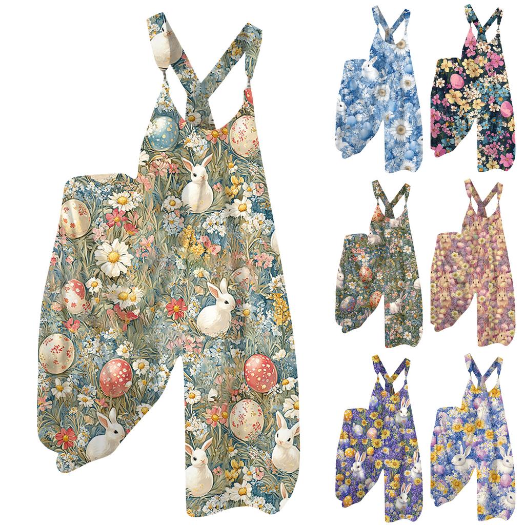 Women's Overalls Print Vintage Jumpsuit (Non-Adjustable Straps)