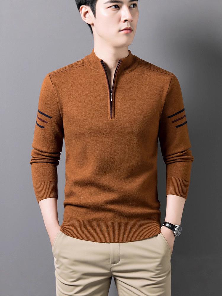 This men's autumn/winter knit sweater offers a perfect blend of style and comfort ideal for cooler months. The loose fit and long sleeves provide a relaxed and cozy feel, while the stand neckline with a convenient zipper adds a touch of modern sophistication to your wardrobe. Crafted from a high-quality acetate material, this pullover ensures durability and a soft touch against the skin. The chemical fiber blended fur material enhances warmth, making it a versatile choice for casual outings or layering on chilly days. Embrace effortless style with this fashionable and functional sweater.