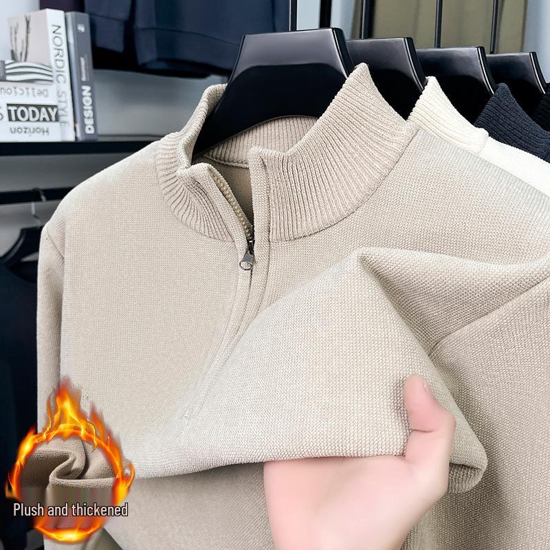 This stylish loose-fit men's sweater offers warmth and comfort with its thick knit design, ideal for cooler temperatures. Featuring a modern half-high collar with a convenient zipper, it effortlessly combines practicality with contemporary fashion. The long sleeves add an extra layer of coziness, while the sweater is crafted entirely from durable polyester for both the main body and the fur-like detailing. Perfect for casual outings or relaxed days at home, this sweater ensures both function and flair in any wardrobe.