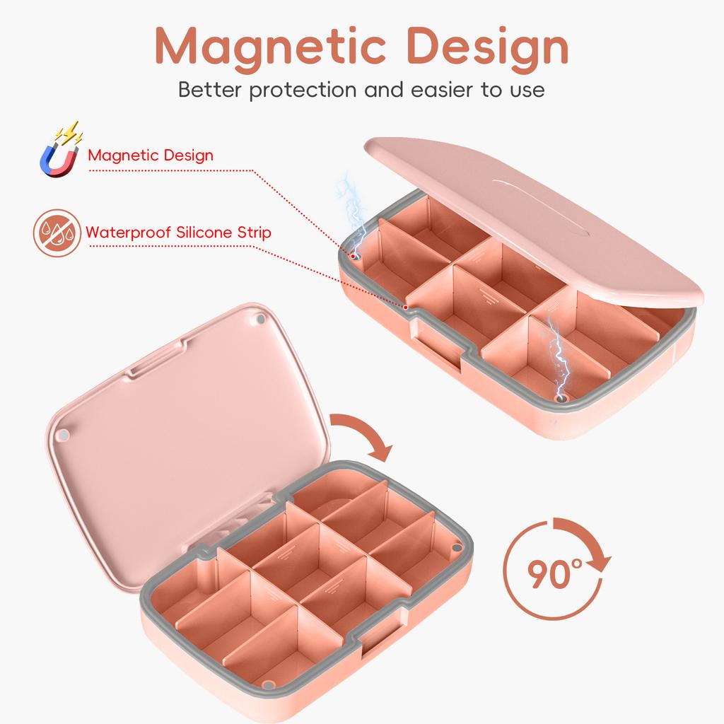 Magnetic Pill Organizer with 9 Compartments Large Capacity Adjustable Waterproof Daily Case for Travel Detachable Medication Box