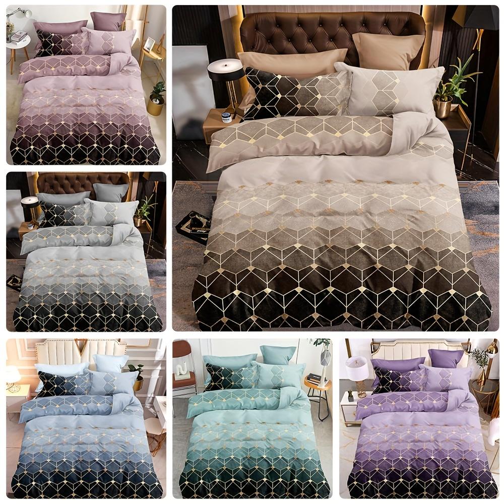 3Pcs Multiple Colors Available Luxe Geometric Marble Pattern Duvet Cover Set - Breathable Polyester Zippered Machine Washable