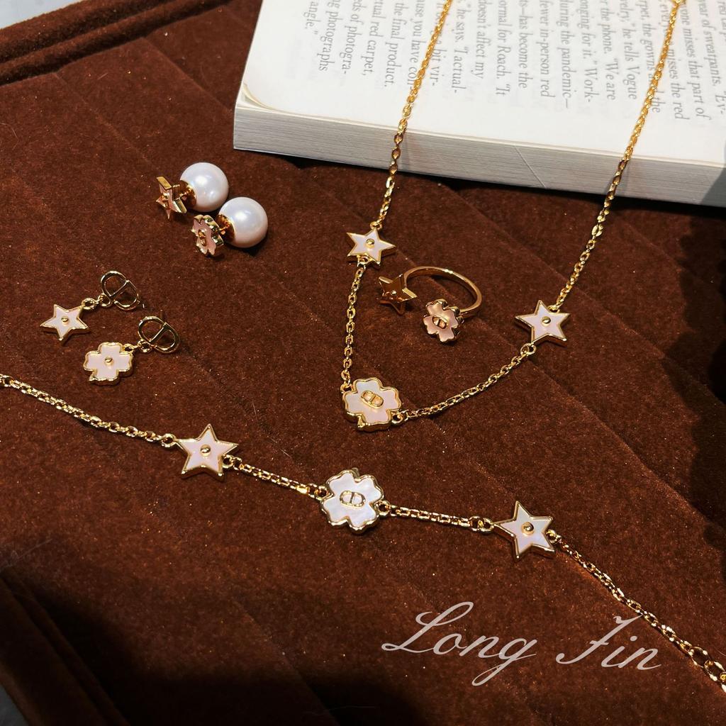 Vintage High Version Star Four-Leaf Clover Fritillary 20 Set Necklace Bracelet Earrings Antique Necklace