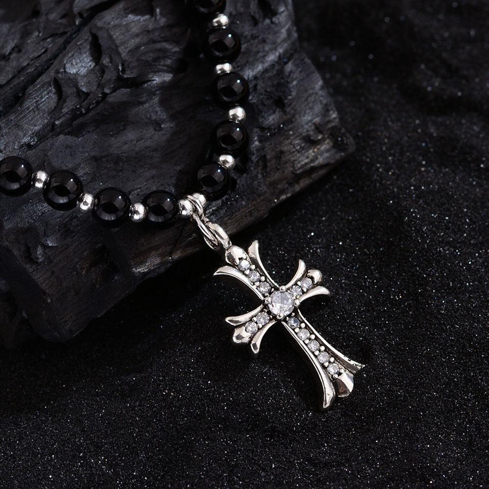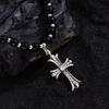 Niche Trendy Brand Black Beaded Zircon Cross Pendant Necklace Female Retro Hip Hop Punk Style Sweater Chain Accessories