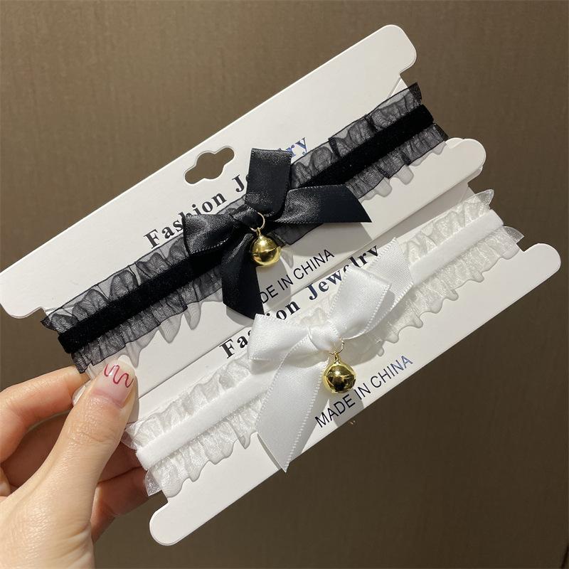 Sexy Little Bell Gothic Lace Choker Necklace Victorian Velvet Collar with Bowknot Pendant Punk Elegant for Women Party