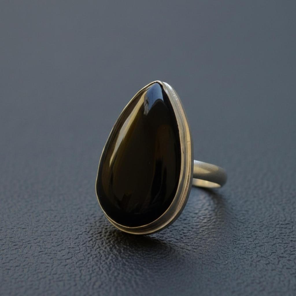 Black Onyx Pear Shape Cocktail Ring, 925 Sterling Silver Jewelry, Handcrafted Minimalist Statement Ring