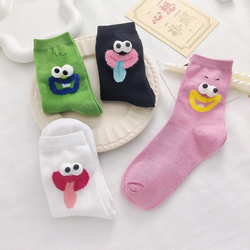 İns Stili 3D Komik İfade Çorapları Komik Gülen Yüz Baskılı Rahat ve Cilt Dostu Kişiselleştirilmiş Çoraplar