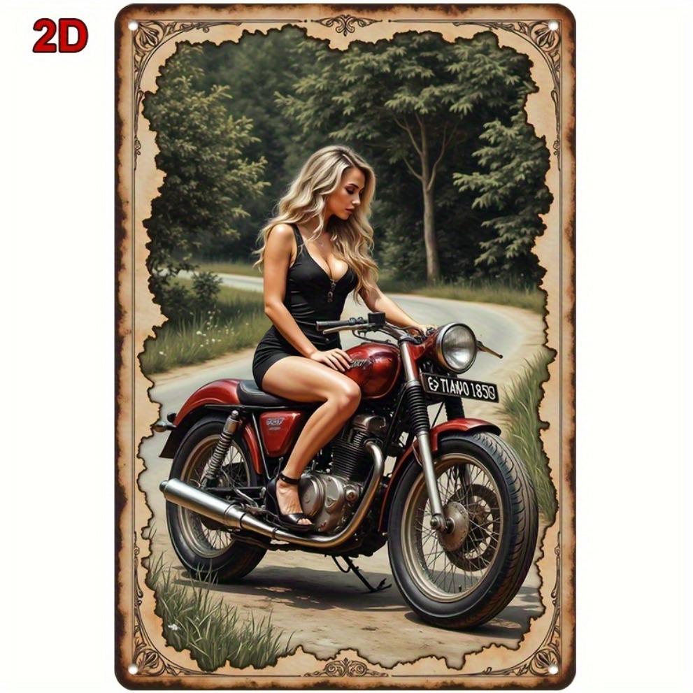 Vintage Motorcycle Metal Sign Pin-Up Girl Retro Garage Bar Decor 12x8in