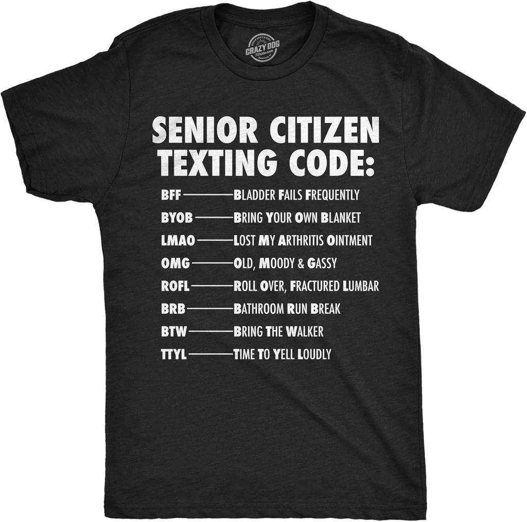 Mens Funny T Shirts Senior Citizen Texting Code Sarcastic Elderly Graphic Novelty Tee for Men