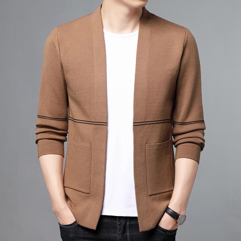 Men's Slim-Fit Knitted Cardigan - Korean Style Fashionable Long Sleeve Sweater Jacket for Spring/Autumn 2025.