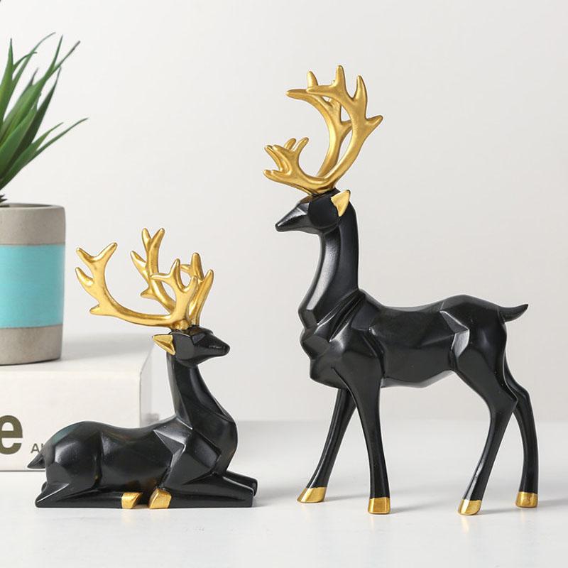 NORTHEUINS Resin Golden Mini Couple Deer Figurine for Interior Geometry Art Model Statue Home Living Room Desktop Entrance Decor