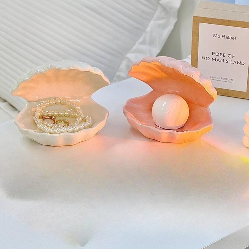 Fashion Ceramic Shell Jewelry Box – Creative Desktop Ornament Valentine's/Birthday Gift Storage Tray Storage for Rings/Earrings