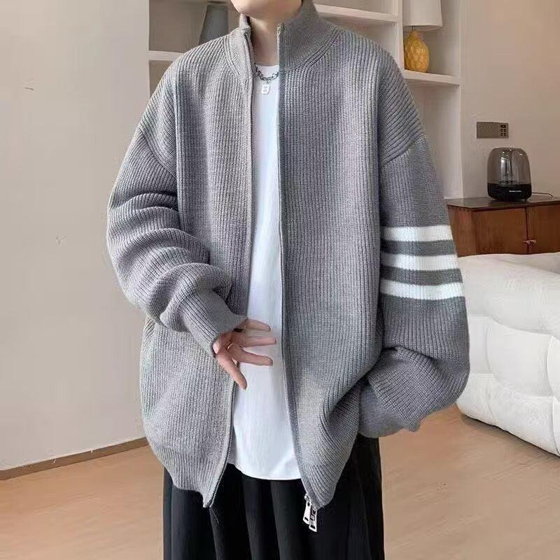 Introducing a stylish and comfortable addition to your winter wardrobe, this Men's Striped Cardigan Sweater is designed for a casual yet sophisticated look. Featuring a loose fit, it offers both comfort and freedom of movement. The stand neckline adds a touch of elegance, while the long sleeves ensure warmth during the cooler months. Made with a standard thickness, this sweater provides just the right amount of insulation. Crafted from a polyester material, it includes a chemical fiber blended fur, ensuring durability and a high-end feel. Perfect for autumn and winter, this knitwear jacket effortlessly combines functionality with style.