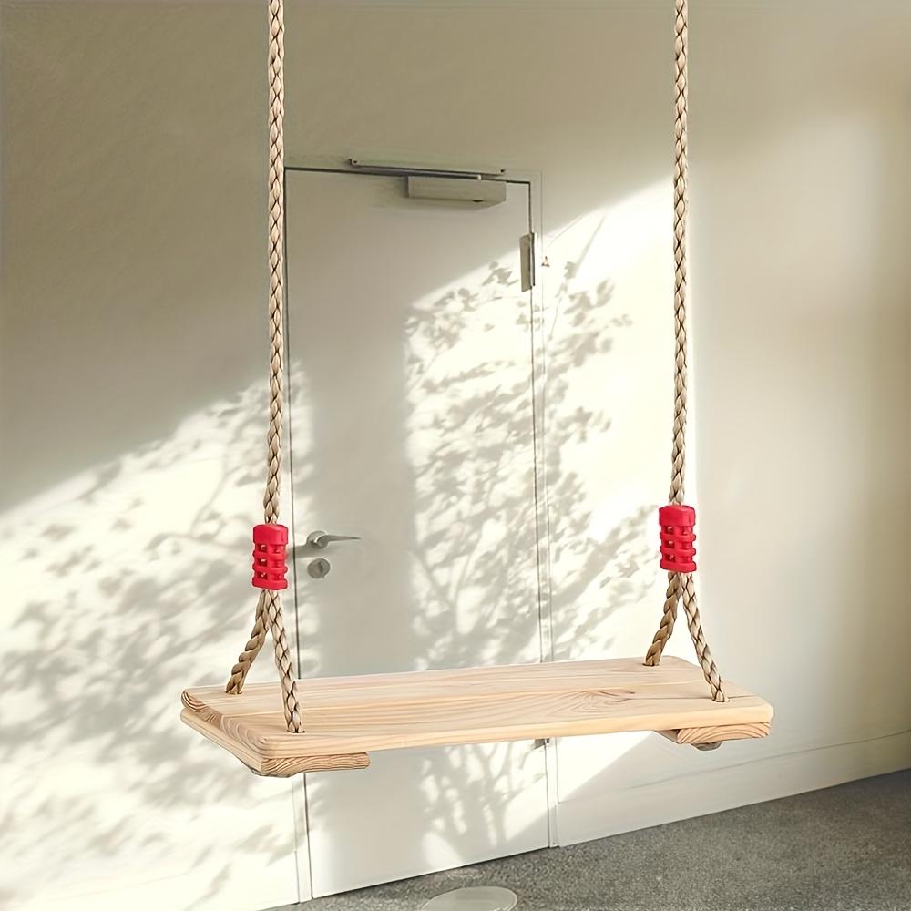 1 Adjustable Swing Adjustable Outdoor Swing for Youngsters Adults Sturdy Wooden Seat with Red Rubberized Ropes Adjustable Length