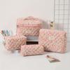 Floral Quilt Design Cosmetic Bags for Women Stylish Travel Organizer Pouches with Zipper Closure Perfect for Makeup Essentials