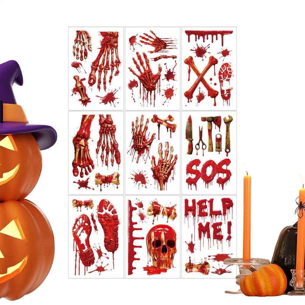 Halloween Clings 3D Spooky Decor Bloody Handprint Footprint Skull Clings for Halloween Party Home Haunted House Apartment