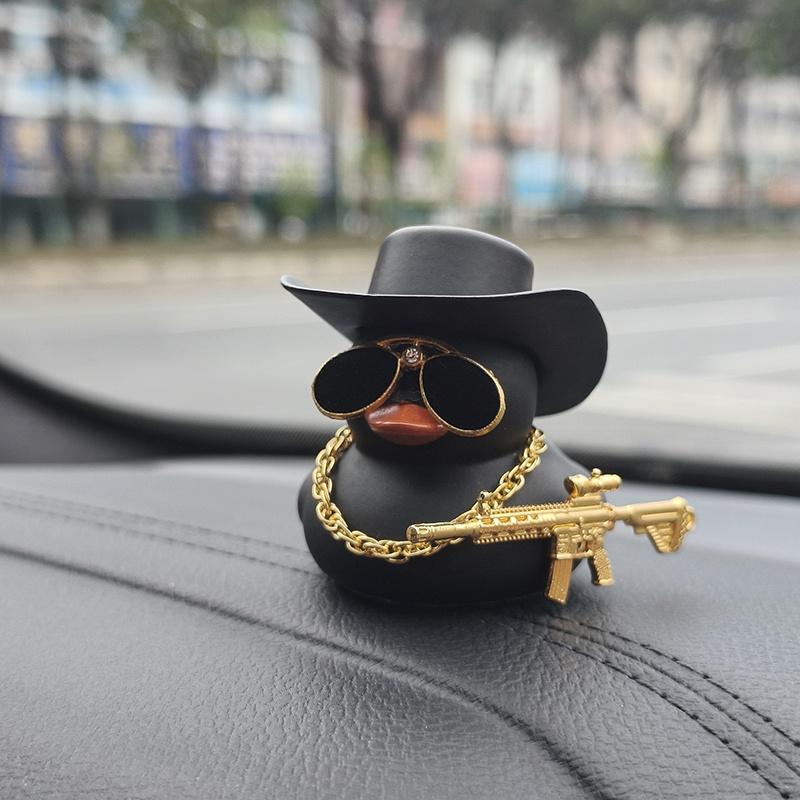 Cowboy Hat Ducks Trendy Car Dashboard Decoration Rubber Duck Office Car Decoration Ornament Black Duck with sunglasses Necklace