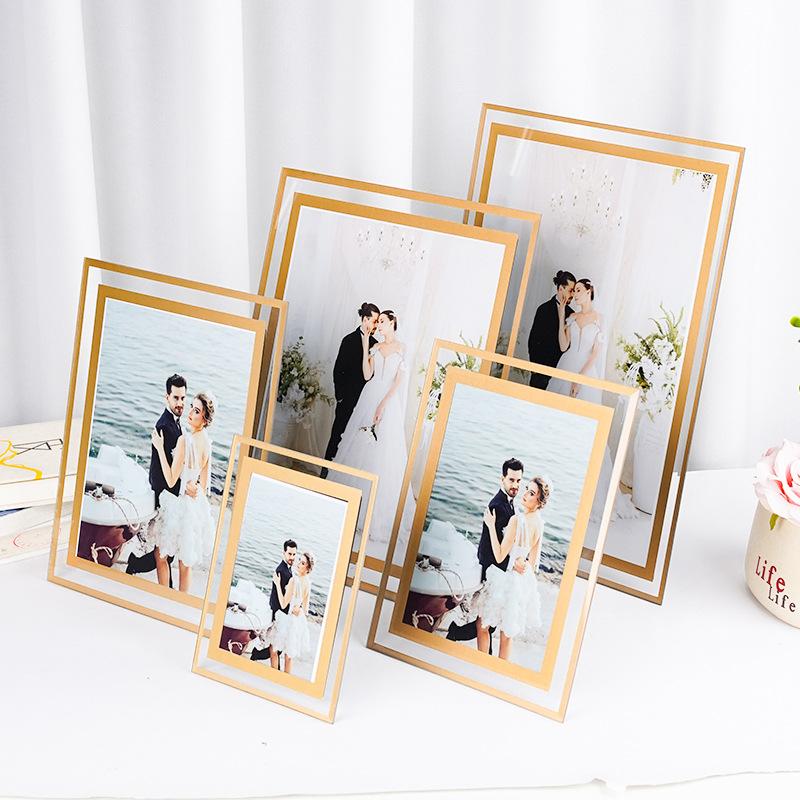 8 or 10 Inch Clear Glass Crystal Photo Frame Gold Tone Edge for Silver Certificate Rectangle Luxury Display Premium Award Frame