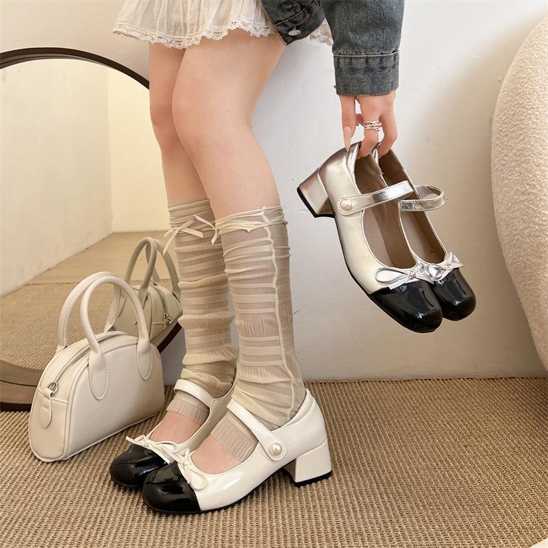 White retro thick heel Mary Jane small leather shoes 2025 new spring and autumn with skirt French small fragrant single shoes