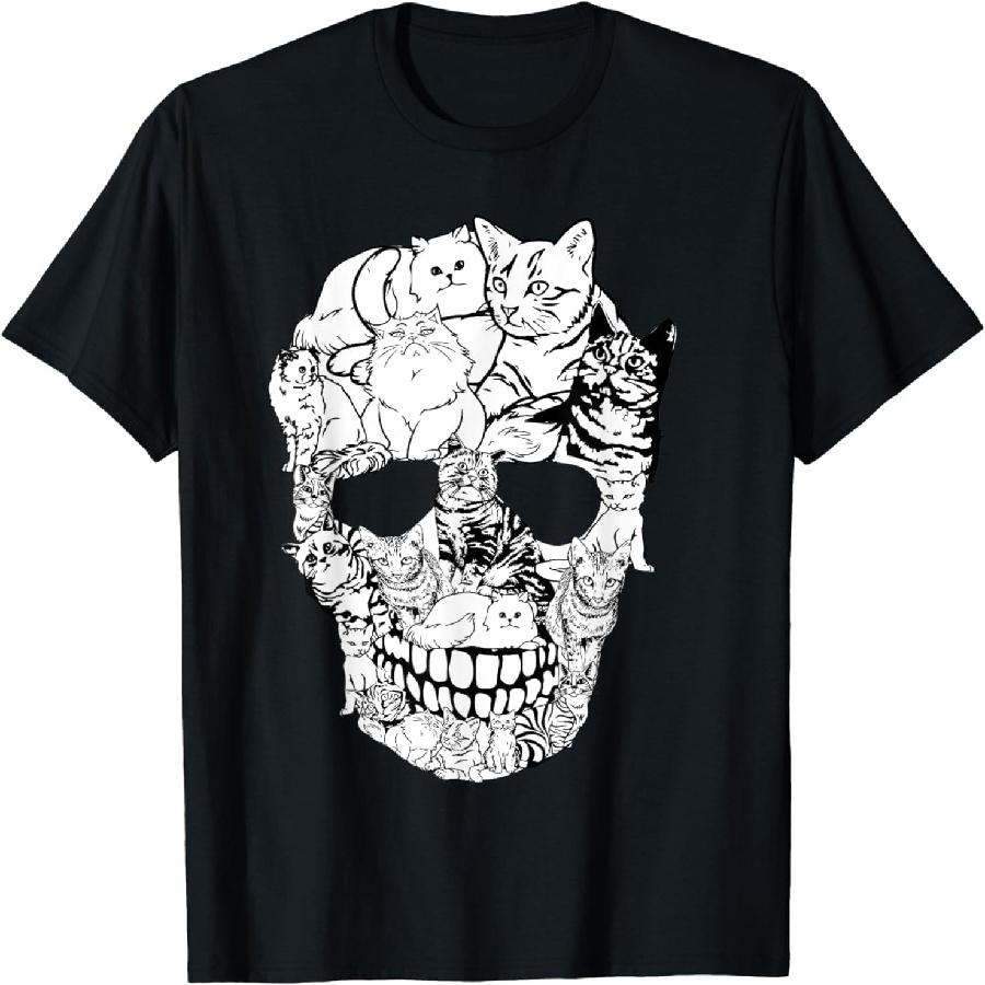 DefrAt Cat Skull T-Shirt, Kitty Skeleton Halloween Costume T Shirt, Funny Graphic Tee, Novelty Graphic Tshirt