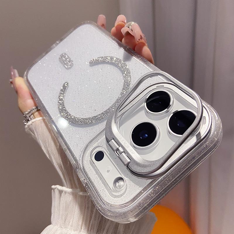 Luxury Clear Bling Magnetic Shockproof Phone Case for IPhone 17 15 16 14 13 12 Pro Max 17 Air for Magsafe Stand Protector Cover