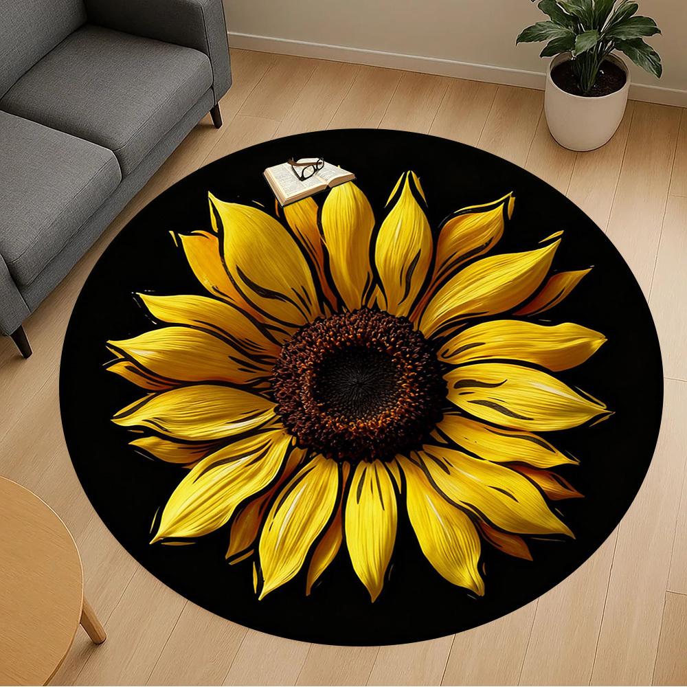 1pc Sunflower Petals Round Chair mat office Area Rug - Non-Slip, Floor Mat for Office, Bedroom, Ideal home decor gift p0105064