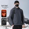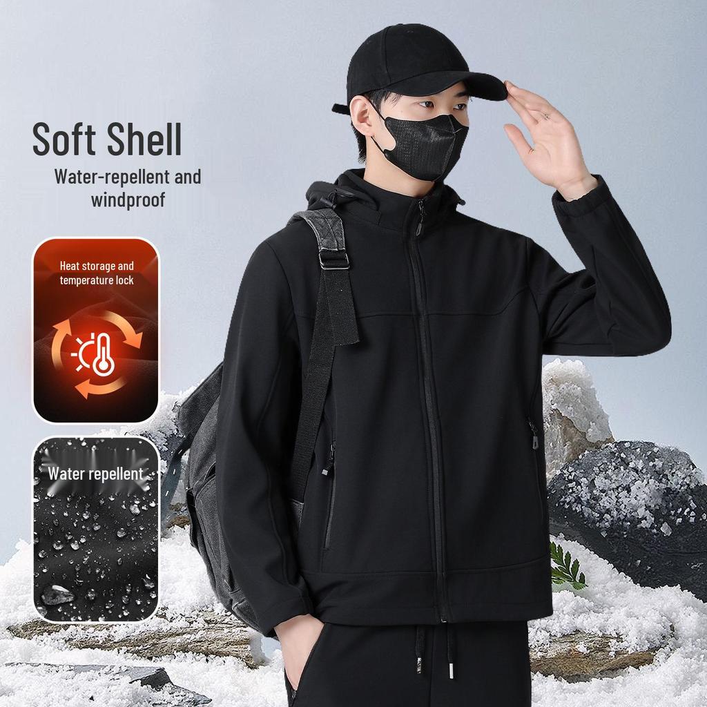Introducing a versatile and resilient outerwear option for men, featuring a fleece-lined softshell designed for optimal protection against the elements. This jacket combines both windproof and waterproof features, ensuring comfort and warmth in various weather conditions. It comes with a practical detachable hood for added convenience and adaptability. The jacket showcases a stand neckline for a snug fit, while the long sleeves and insulated thickness offer additional coverage and insulation. Its solid pattern exudes a classic style, made from durable nylon material, ensuring longevity and durability. Perfect for those seeking both functionality and a timeless look.