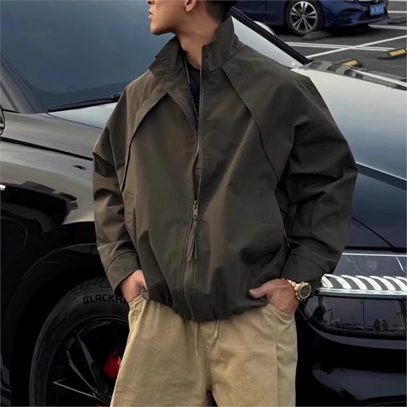 Men's Stand Collar Three-Proof Pilot Jacket - Solid Color, Spring/Autumn Outerwear