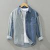 Men's Spring/Autumn Striped Patchwork Denim Jacket - Trendy, Cool, Loose-Fit, Washed Workwear in American Hong Kong Style.