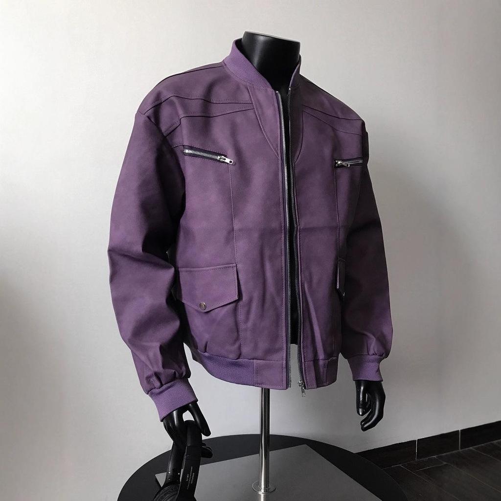 2025 Men's American Vibe Purple PU Leather Streetwear Jacket with Retro Zippers - Loose Fit