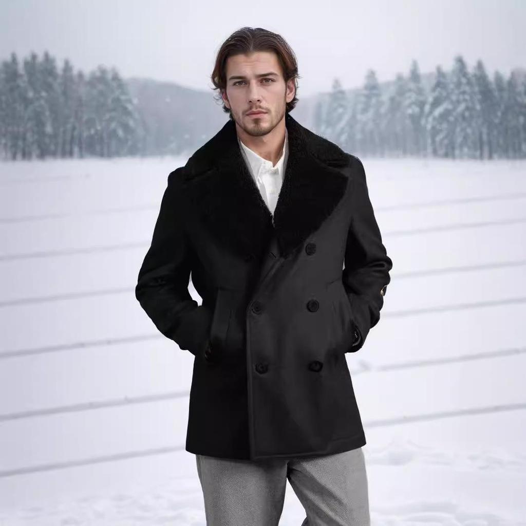 This men's jacket from the 2025 Autumn/Winter Collection showcases a classic slim-fit, double-breasted design that exudes timeless sophistication. Crafted from premium wool, it features a solid pattern, providing a versatile and elegant look. The medium thickness of the outerwear makes it ideal for keeping warm during cooler months, while the tailored neckline adds a touch of refinement. Perfect for both formal and casual occasions, this jacket is a must-have staple for any stylish wardrobe.