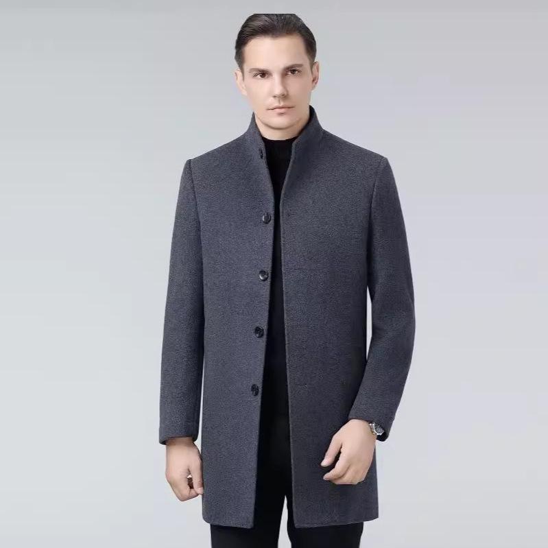 This high-quality men's coat is crafted for the discerning gentleman seeking both style and functionality. Designed with a slim fit, this double-faced wool coat is ideal for autumn and winter, providing excellent insulation with its down liner while maintaining a sleek silhouette. The coat features a solid pattern and a stand collar, offering a refined and modern look suitable for business casual settings. Made from premium wool materials, it ensures warmth and comfort without compromising on elegance, making it a versatile addition to any wardrobe.