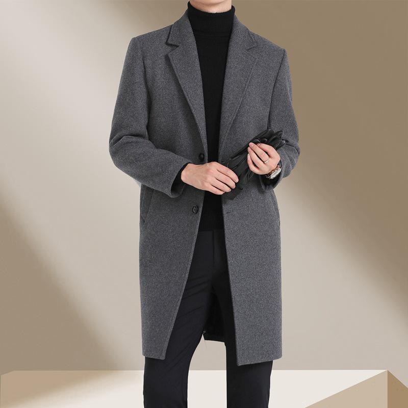 This mid-length woolen overcoat is designed for both middle-aged and young individuals seeking a blend of style and comfort. Featuring a regular fit and medium thickness, it is perfect for warding off the chill during the winter months. Crafted from high-quality wool, this coat offers warmth and durability. Its tailored lapel neckline adds a touch of sophistication, while the solid pattern ensures a versatile addition to your wardrobe. Ideal for casual outings, this overcoat seamlessly combines classic elegance with modern fashion.