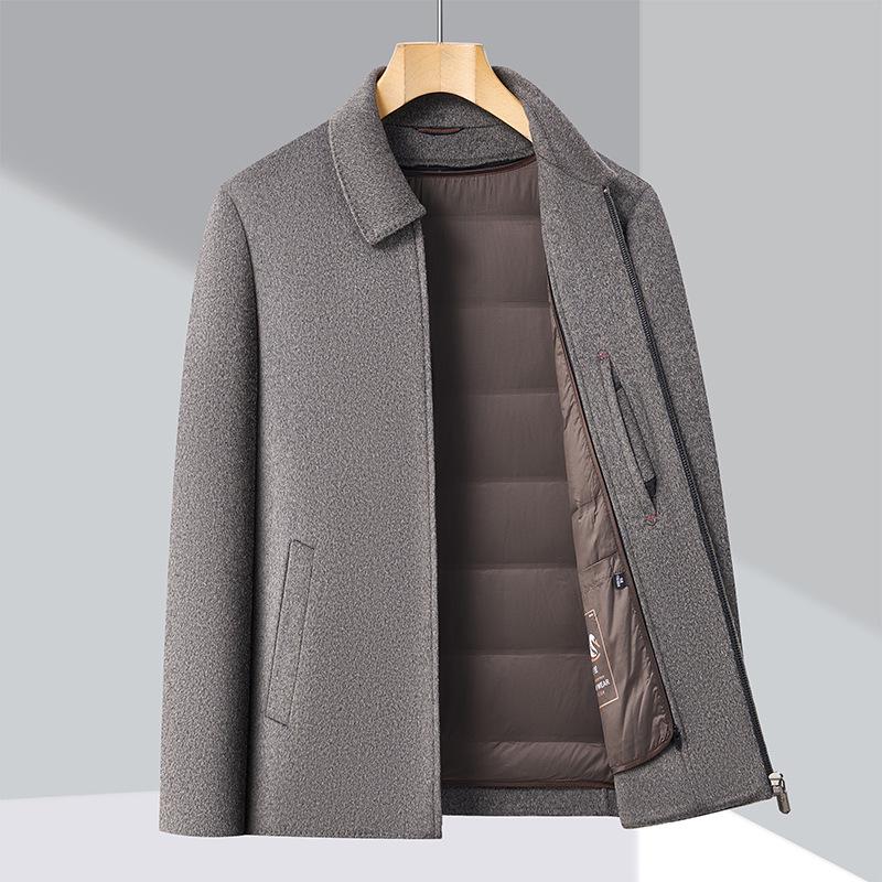 Introducing a versatile winter coat designed for middle-aged men seeking both style and warmth. This coat features a sophisticated lapel style and offers a regular fit, ensuring comfort and refined elegance. Crafted from high-quality wool material, it provides excellent insulation thanks to its thickened design. The detachable down liner adds an extra layer of warmth, allowing for adaptability in varying weather conditions. With a solid pattern and tailor neckline, this coat exudes a classic, timeless look, making it an essential addition to any winter wardrobe. Whether for a casual outing or a formal event, this coat effortlessly combines practicality with fashion.