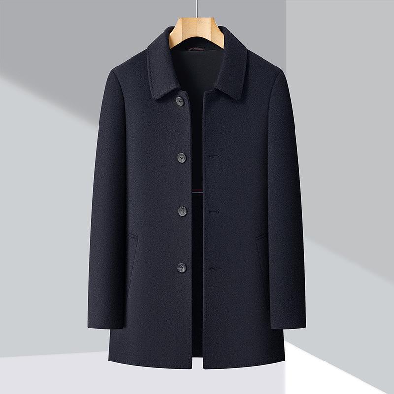 Elevate your wardrobe with this Men's Double-Faced Wool Overcoat, perfect for the Autumn/Winter 2025 season. Designed with the modern, middle-aged dad in mind, this business casual coat offers a regular fit for comfort and style. The insulated thickness provides warmth on colder days, while the solid pattern and wool material exude sophistication. The no-iron lapel and tailored neckline add to its polished look, making it a practical yet fashionable choice for any occasion.