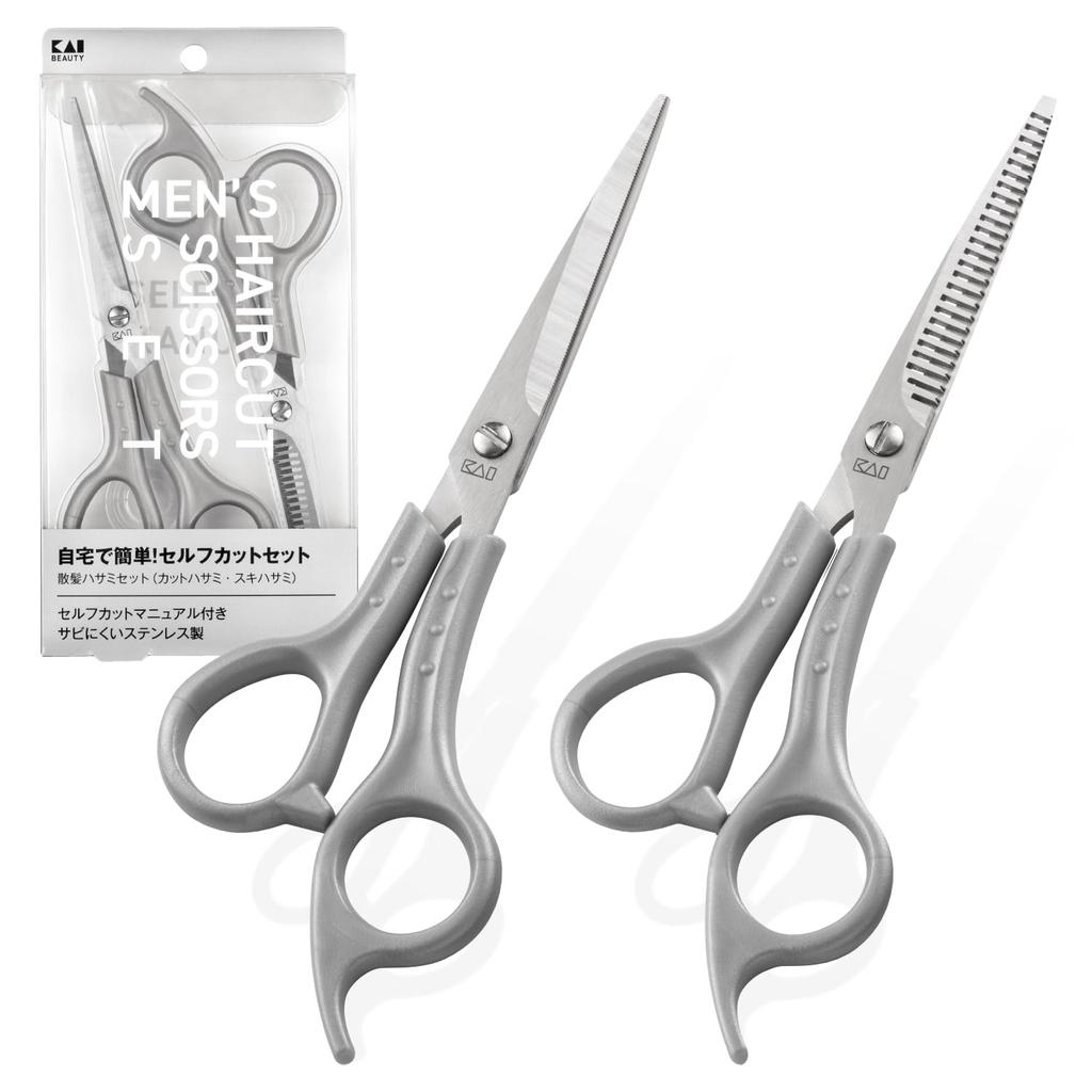 Kai Corporation KAI Hair Cutting Set with Stainless Steel Cutting Scissors for Thinning Scissors KQ3205 Self-Cutting Manual, Men,