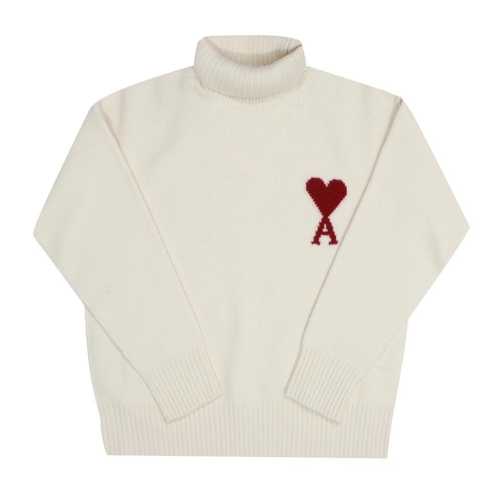 Ami Big Heart Logo Intarsia Turtleneck Knit Unisex Model Uks839 018 154