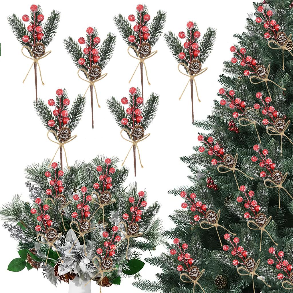 5pcs Christmas Accessories Red Berry Bouquet Christmas Decoration Snowflake Hemp Rope Pine Pinecone Berry Branches