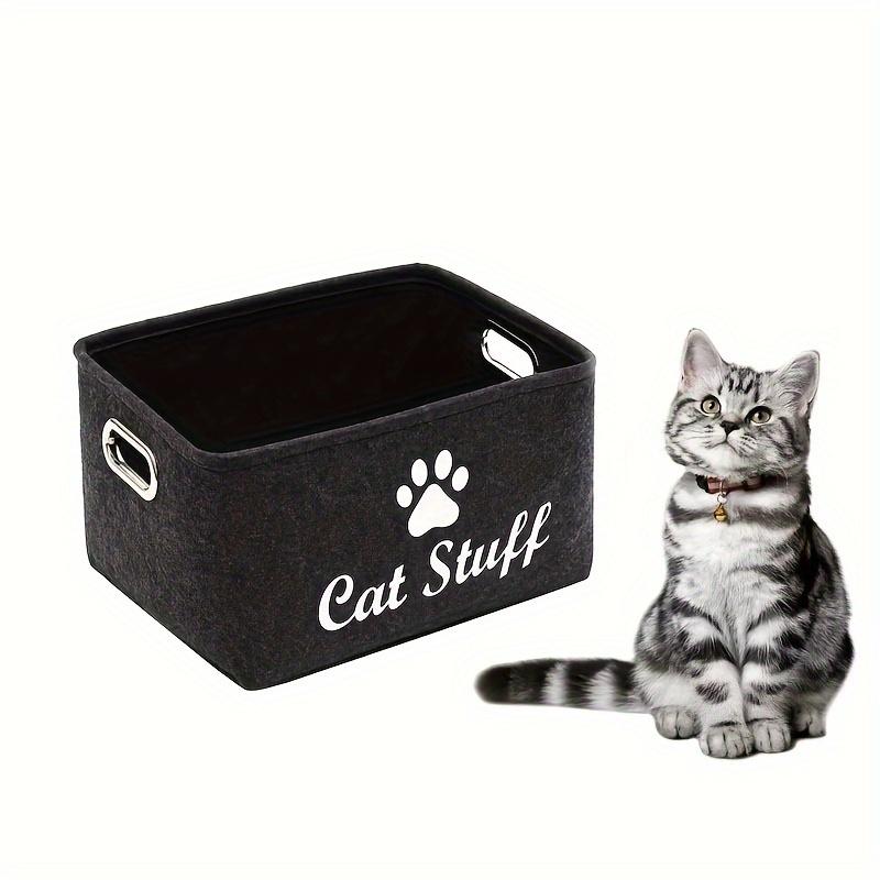 Plush Toy Storage Box Pet Toy Organizer Felt Basket with Iron Handle Storage Bin