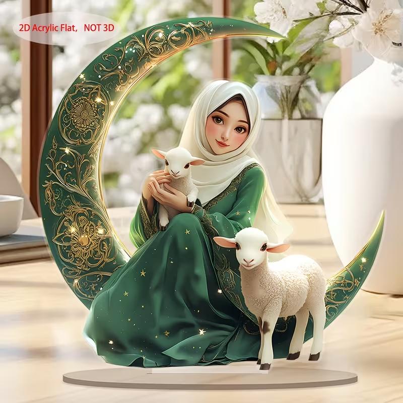 Bohemian Girl Sitting on the Moon Desktop Decoration Elegant Ramadan Gift for Home Office Bedroom Decor