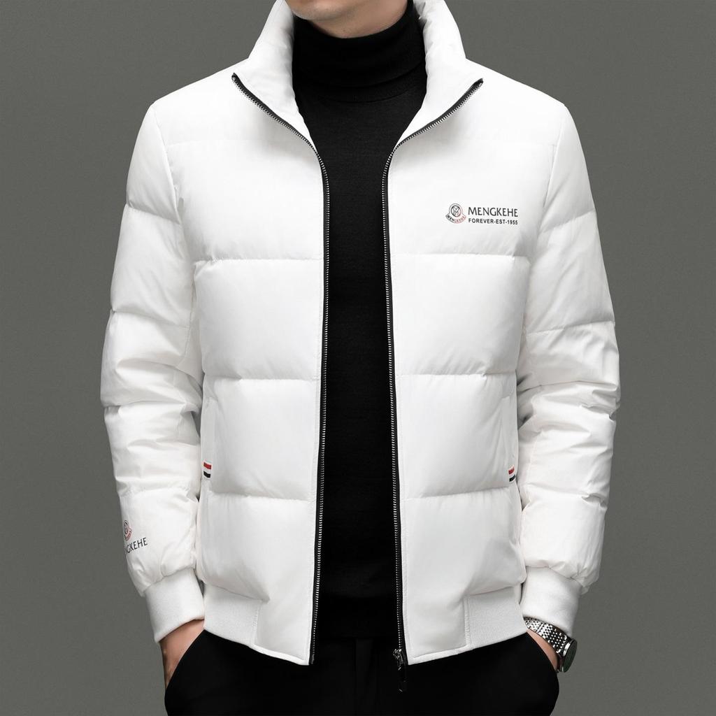 Introducing a stylish and cozy addition to your winter wardrobe. This men's jacket is designed with a stand collar for a modern and sophisticated look. Crafted with an insulated outerwear thickness and filled with duck down, it ensures exceptional warmth and comfort during cold weather. The exterior is made from high-quality polyester, offering durability and a sleek appearance. With its trendy and high-end rogue chic design, this jacket is perfect for casual outings, providing both flair and functionality. Whether you're out for a stroll or heading to a gathering, this winter essential will keep you warm and fashionable.