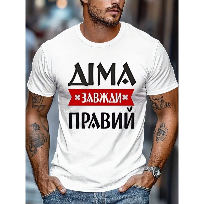 European sizes Men's T-shirt with Russian Slogan Pattern, Short Sleeved T-shirt, White Loose Silhouette Top, Soft Elastic Round Neck, Skin Friendly