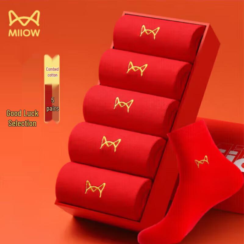 Mao Ren Men's Lucky Red Mid-Calf Socks (5-Pair Pack)