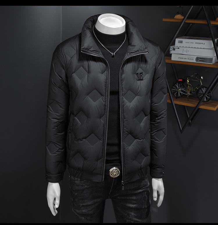 2025 Winter Men's Embossed Stand Collar Down Jacket - European Style Trendy Casual Outerwear