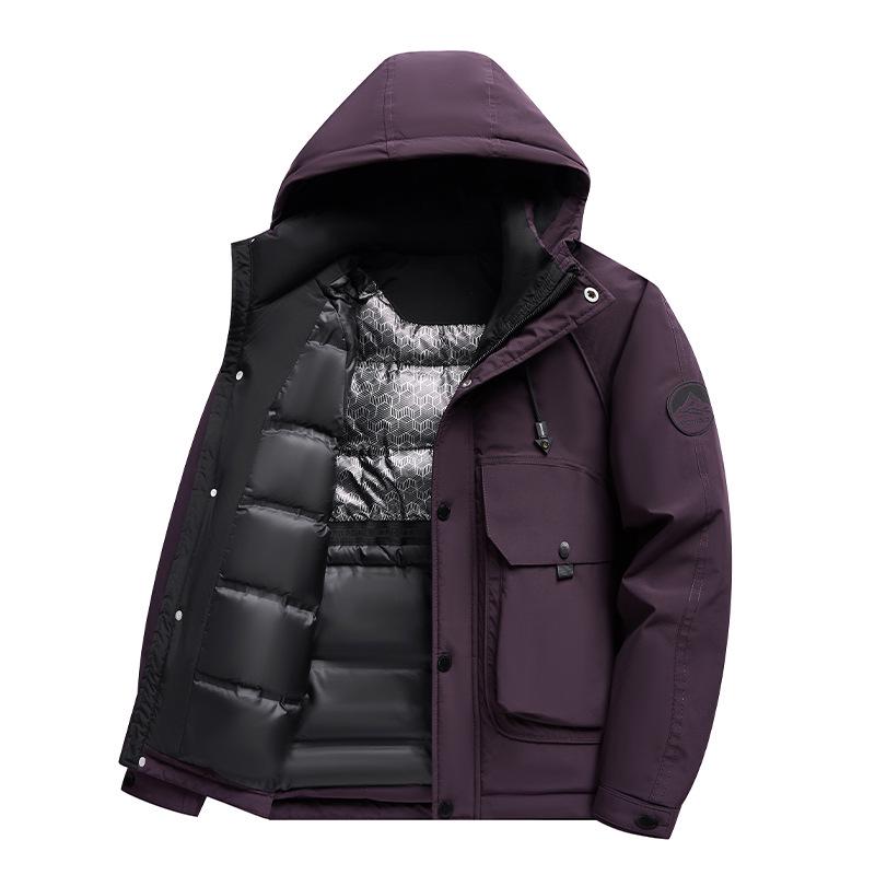 Experience ultimate warmth and style with this hooded ski jacket, designed for the modern man who values both function and fashion. Filled with premium duck down, this jacket ensures excellent insulation without compromising on comfort. The loose fit allows for easy movement, while the tailored neckline adds a touch of sophistication. Crafted from a durable polyester material and featuring a unique cotton blend fabric for accents, this jacket is perfect for both business casual settings and outdoor adventures. Embrace the cold with confidence, knowing you're wrapped in cozy, insulated comfort.
