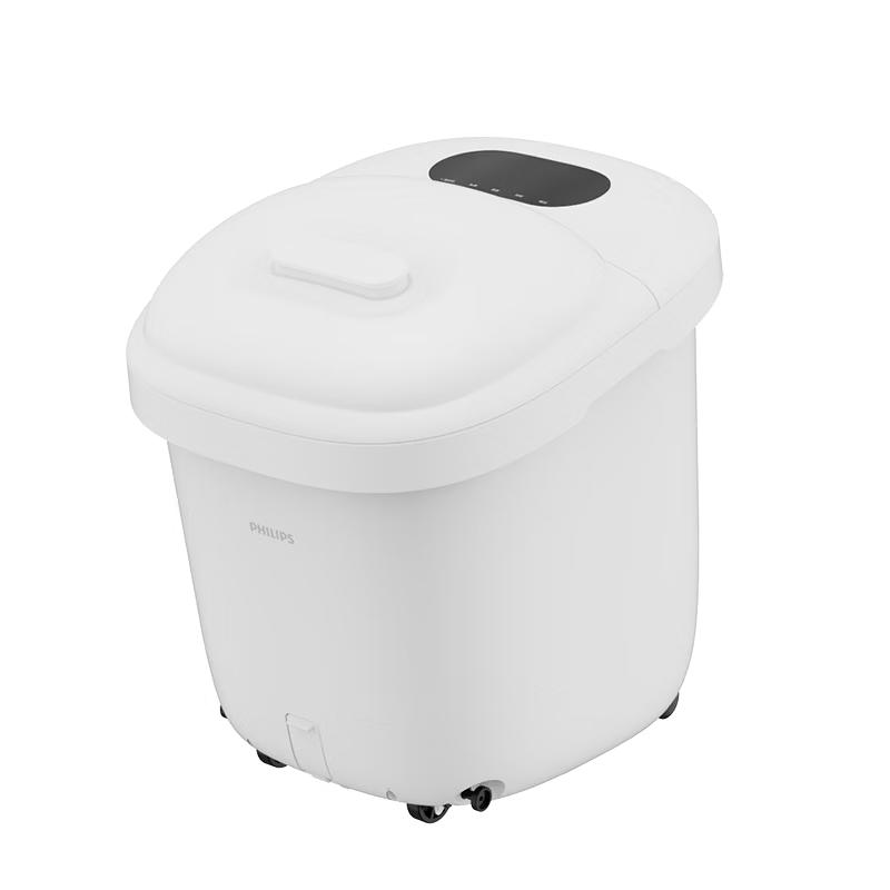 Experience ultimate relaxation with the Philips Electric Foot Spa Massager, featuring a comfortable reclining soak design and electric massage turntable for soothing relief. This advanced foot bath ensures enhanced hygiene with UV sterilization and maintains a smart constant temperature up to 48℃. Enjoy convenient touch controls, a waterproof cover, 4 massage gears, and integrated wheels for easy movement. The non-foldable unit utilizes efficient DPS heating, has an 8L capacity, and is designed for a no-wash experience, making it an ideal gift for parents and elders. Model PPM3207F.